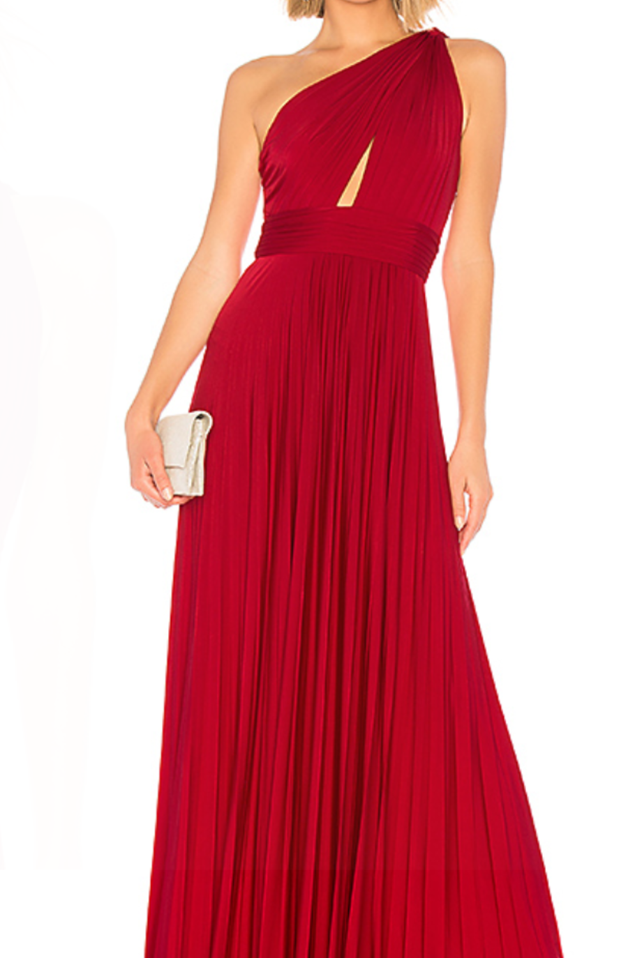 Diseño de tela stretch, plisado, de un hombro y con abertura en el escote.