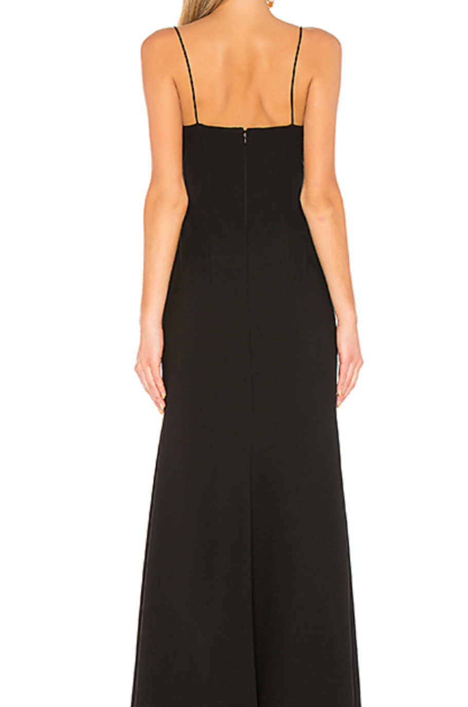 Negro de tirantes con escote pronunciado y abertura en la pierna.
