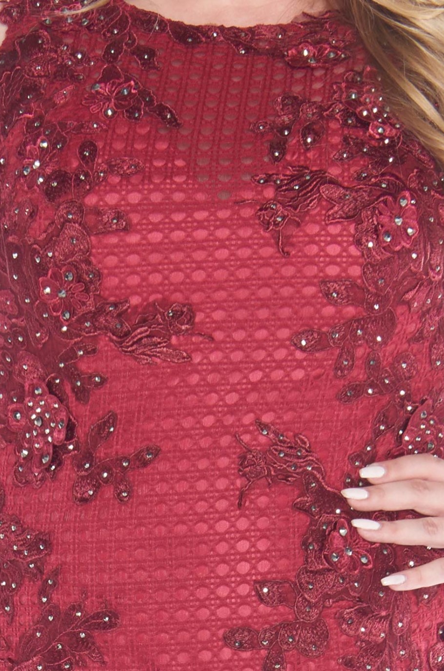 Corte sirena, sin manga con aplicaciones de encaje y bordado.