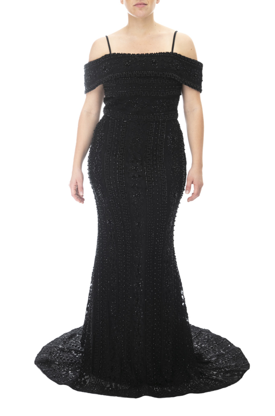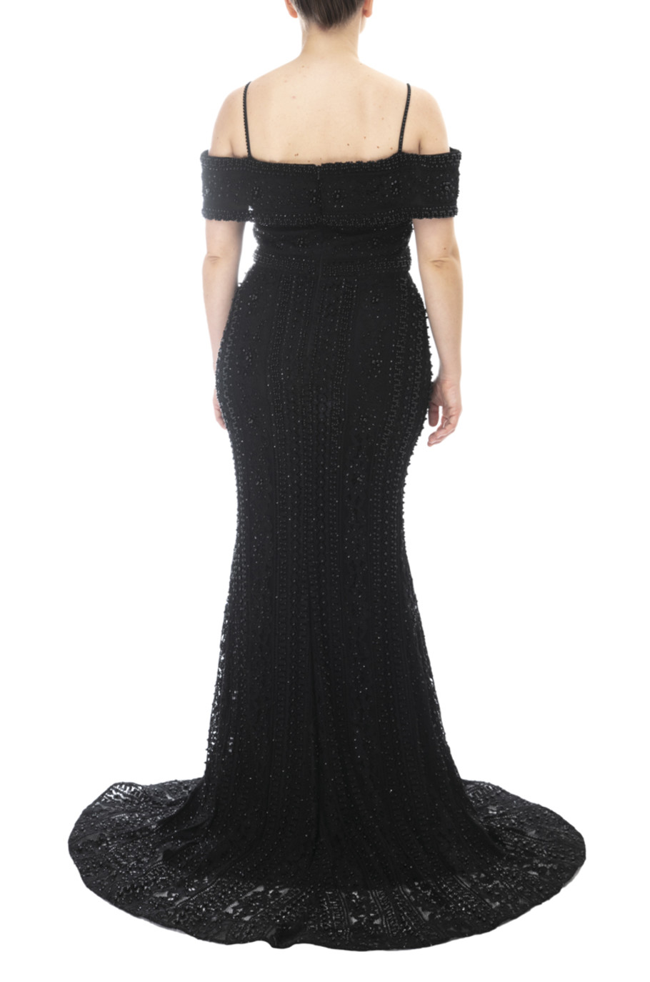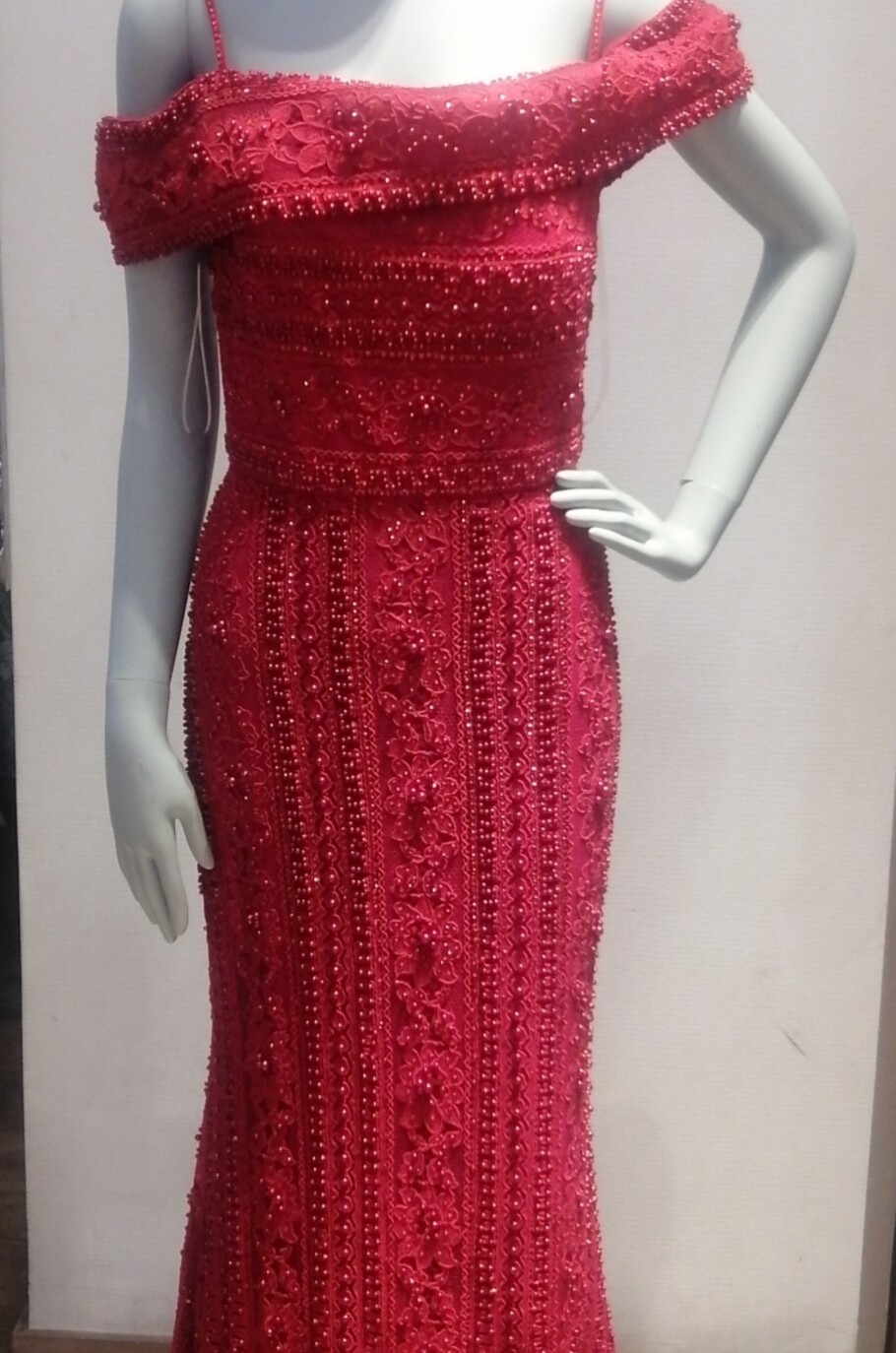 Vestido sirena con hombros bajos con pedrería