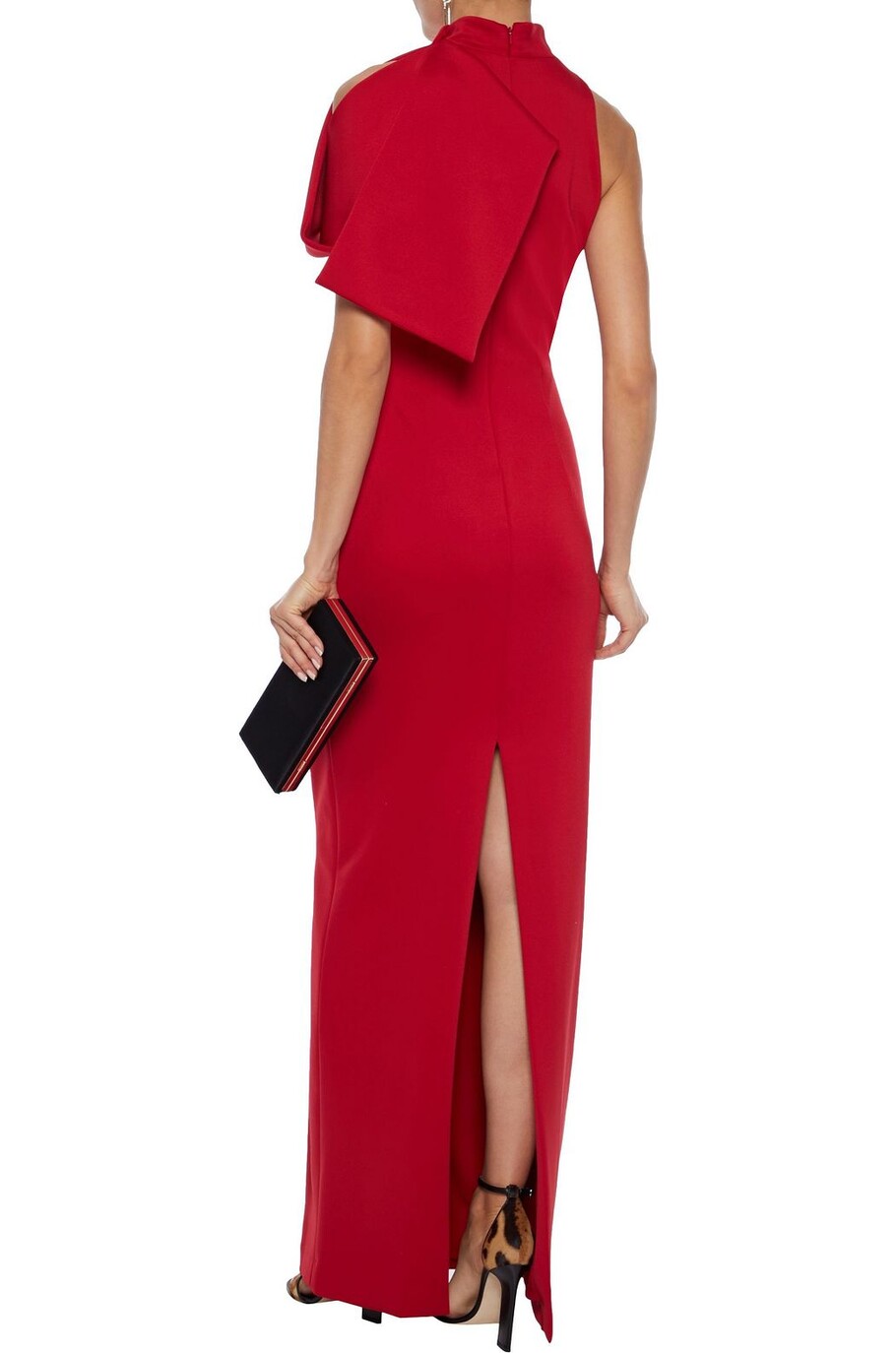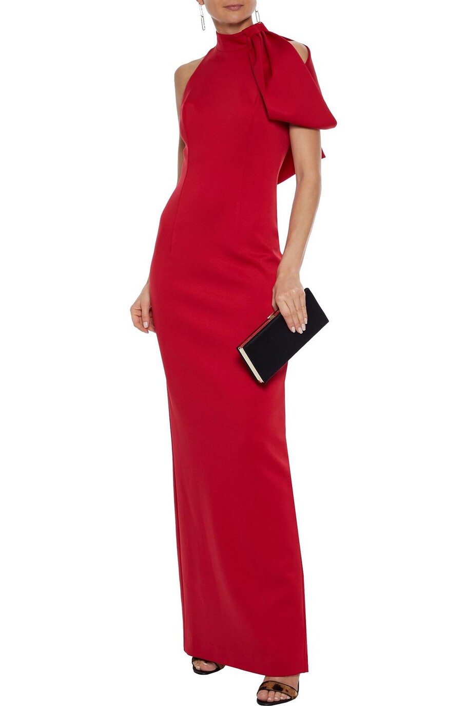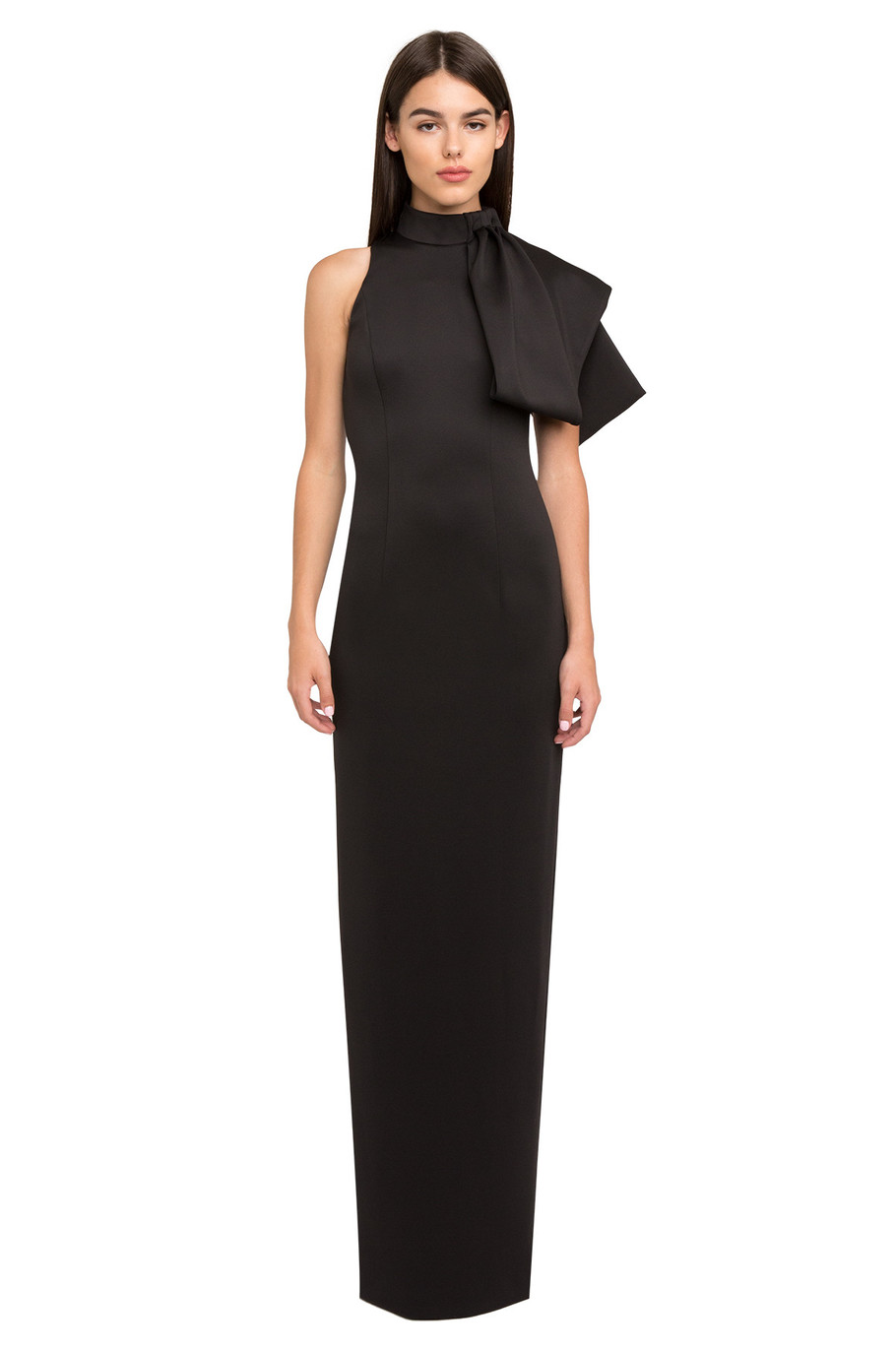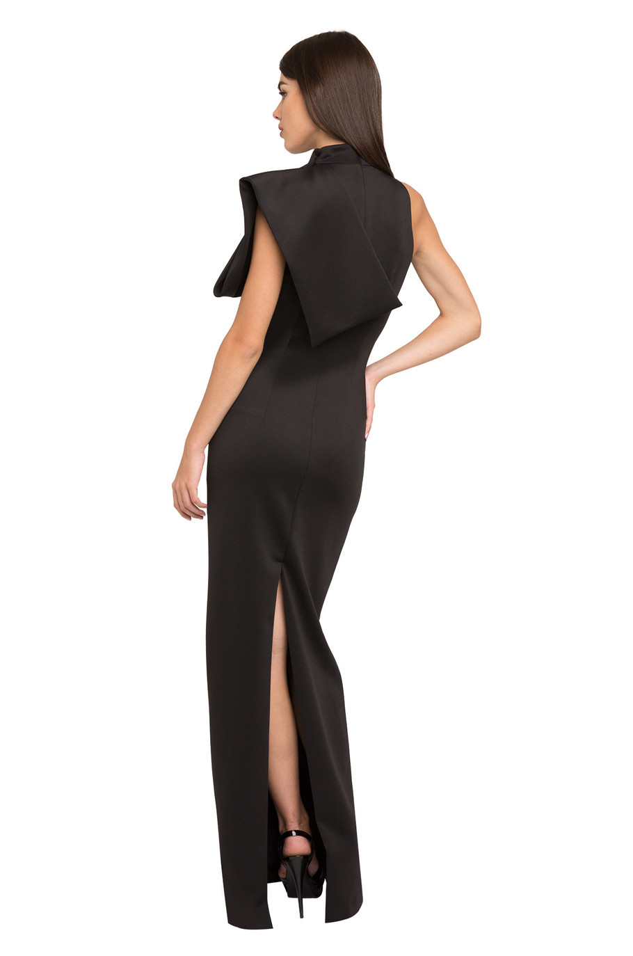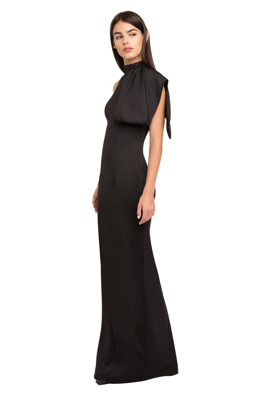 Vestido de cuello alto entallado con detalle en el hombro y tela de neopreno.